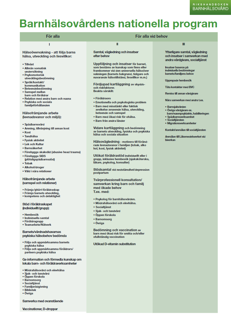 Barnhälsovården (BHV) når nästan alla barn 0-6 år gamla och deras föräldrar. BHV besitter också ett högt förtroende från de flesta i samhället. Detta gör att barnhälsovården är en bra samarbetspartner för socialtjänsten som gärna vill nå ut till många i ett tidigt skede för att kunna erbjuda familjestödjande insatser.